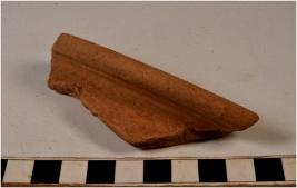 | Description / विवरण | A fragment of a vase of red ware with splayed out rim, concave neck, oblique sides of medium fabric. |