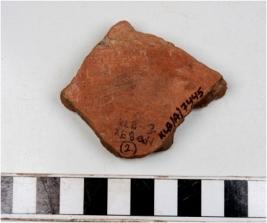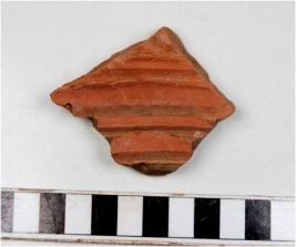 | Description / विवरण | A potsherd of a red ware showing deep grooves on interior of fine fabric and ill fired. |