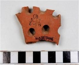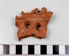 | Description / विवरण | A fragment of potsherd a perforated jar of red ware of fine fabric. |