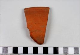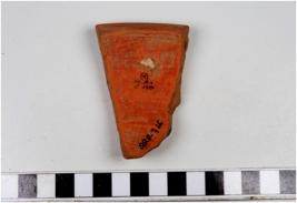 | Description / विवरण | A fragment of a bowl of red ware with featureless rim, convex profile of medium fabric. |