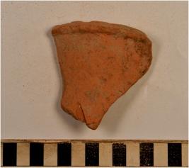 | Description / विवरण | A fragment of a vase of red ware with featureless rim, vertical neck, oblique sides of medium fabric. |