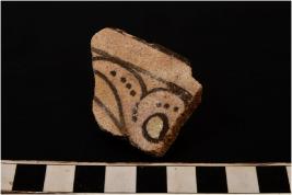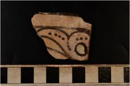 | Description / विवरण | A fragment of a bowl of sandy texture of glazed ware with featureless rim, having floral design on surface of medium fabric. |