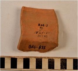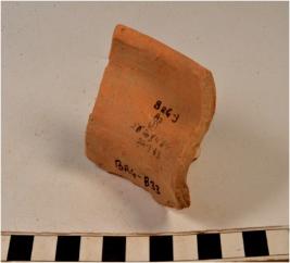| Description / विवरण | A Fragment of a pot of dull red ware with incurved rim, concave neck, oblique sides of medium fabric. |
