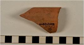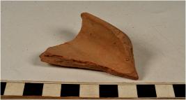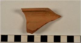 | Description / विवरण | A fragment of a vase of red ware with out turned rim, concave neck, oblique sides, painted with black showing horizontal band on rim of fine fabric. |