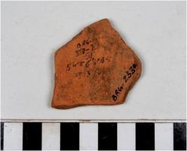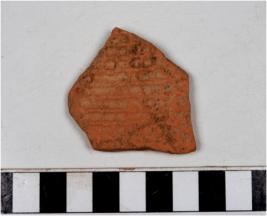 | Description / विवरण | A potsherd of red ware having mat impression on the exterior of medium fabric. |