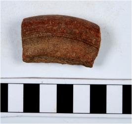 | Description / विवरण | A fragment of a thickened beaded rim of red ware. |