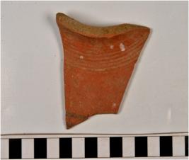 | Description / विवरण | A potsherd of red ware having continuous incised horizontal lines on the surface. |