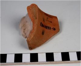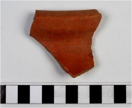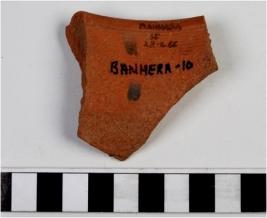 | Description / विवरण | A fragment of a vase of red ware with externally thickened rim, concave neck, oblique sides of fine fabric. |