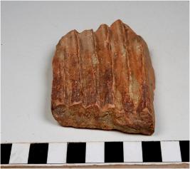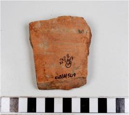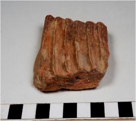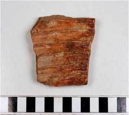 | Description / विवरण | A potsherd of a red ware showing grooves on interior of fine fabric. |