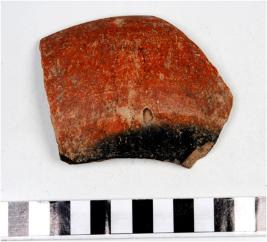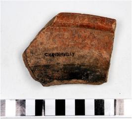 | Description / विवरण | A fragment of a bowl of black and red ware with beaded rim, straight sides, globular body, of fine fabric. |