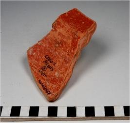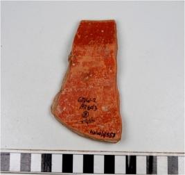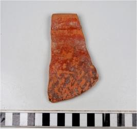 | Description / विवरण | A fragment of a basin of red ware with out turned rim, tapering sides, treated with red slip of medium fabric. |