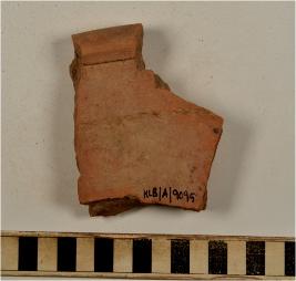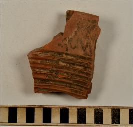 | Description / विवरण | A fragment of a basin of red ware with nail headed rim, straight sides having incised oblique strokes on exterior and incised wavy line along with grooves on exterior of fine fabric. |