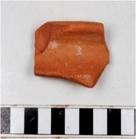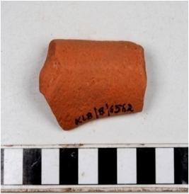 | Description / विवरण | A fragment of a vase of red ware with flanged rim, concave neck, oblique sides of fine fabric. |