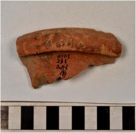 | Description / विवरण | A fragment of a rim of red ware with nail headed rim of medium fabric. |