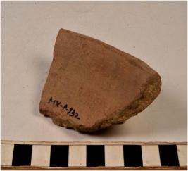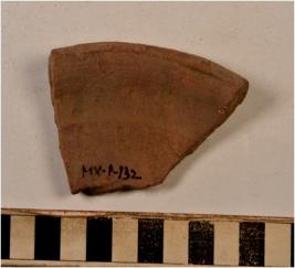 | Description / विवरण | A fragment of a bowl of red ware with incurved rim, straight sides of coarse fabric, sturdy texture. |