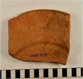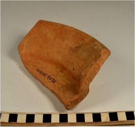 | Description / विवरण | A fragment of a dish of red ware with flaring rim, broken base of thick fabric, well levigated. |