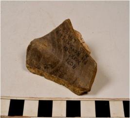 | Description / विवरण | A potsherd of painted grey ware showing painted with oblique band in black pigment on the interior of medium fabric, sturdy texture, well levigated. |