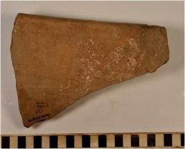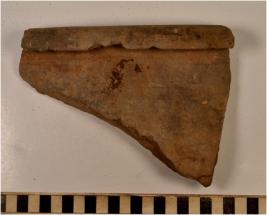 | Description / विवरण | Fragment of rim a jar of red ware with flanged rim, oblique sides of medium fabric. |