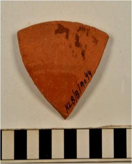 | Description / विवरण | A fragment of a dish of slipped red ware with incurved rim, tapering sides of fine fabric well levigated. |