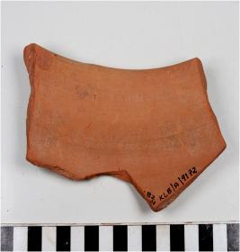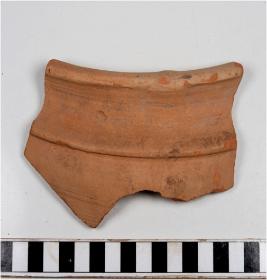 | Description / विवरण | A fragment of a pot of red ware with out turned rim having ridge on shoulder oblique sides of fine fabric. |