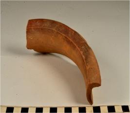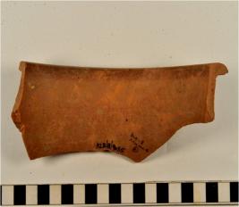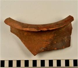 | Description / विवरण | A fragment of a vase of red ware with out turned rim, concave neck, oblique sides treated with chocolate slip of fine fabric, well levigated. |