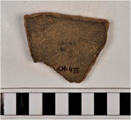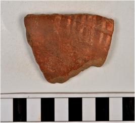 | Description / विवरण | A potsherd of russet coated painted ware, painted with white showing vertical lines, of fine fabric. |