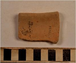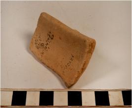 | Description / विवरण | A fragment of a bowl of red ware with nail headed rim, tapering sides of medium fabric. |