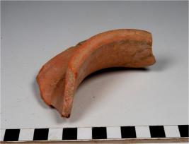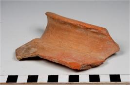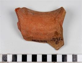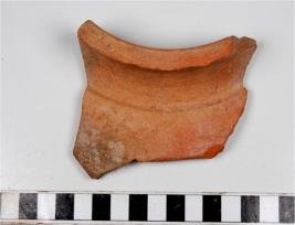 | Description / विवरण | A fragment of red ware with out turned rim, concave neck oblique sides of fine fabric. |