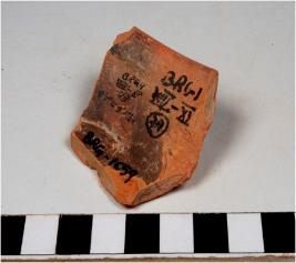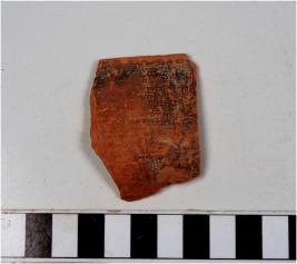 | Description / विवरण | A fragment of a bowl of red ware with featureless rim, straight sides of medium fabric. |