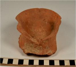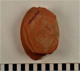 | Description / विवरण | A fragment of a dish on stand of red ware with broken flat top, flaring profile base of fine fabric. |