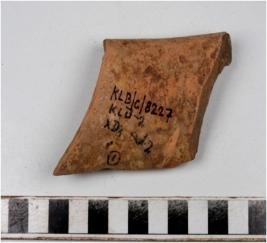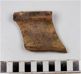 | Description / विवरण | A fragment of a vase of dull red ware with out turned rim, concave neck, straight sides of coarse fabric. |