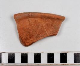 | Description / विवरण | A fragment of a bowl of red ware with nail headed rim, tapering sides of fine fabric. |
