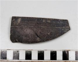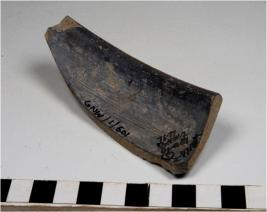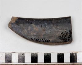 | Description / विवरण | A fragment of a bowl of dark grey ware with incurved rim, slightly convex sides of fine fabric, fine texture. |