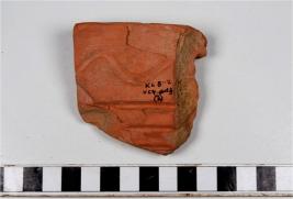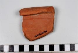 | Description / विवरण | A Fragment of of a basin of red ware with out turned rim, having a row of incised wavy line and grooves on interior straight sides of fine fabric. |