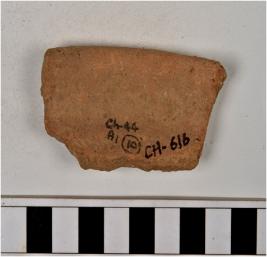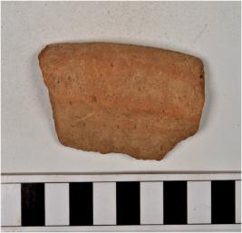 | Description / विवरण | A fragment of a dish of red ware with incurved thickened rim, tapering sides, flat base, of coarse fabric. |