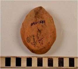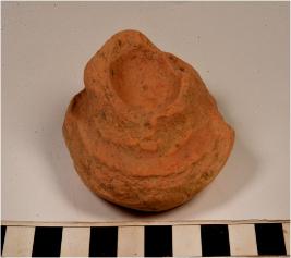 | Description / विवरण | A fragment of a bsse of red ware with disc base of medium fabric. |