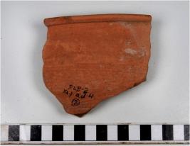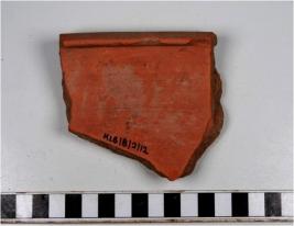 | Description / विवरण | A Fragment of of a basin of red ware with nail headed rim, straight sides having a row of incised oblique strokes on exterior of fine fabric. |