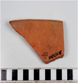 | Description / विवरण | A fragment of a bowl of red ware with flared rim, straight sides of medium fabric. |