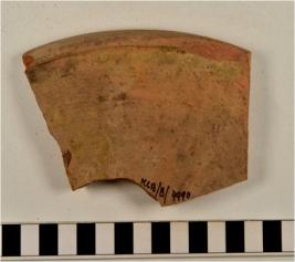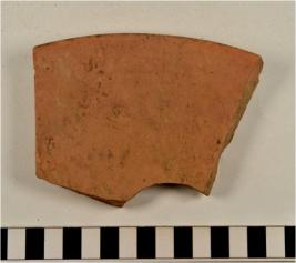 | Description / विवरण | A fragment of a basin of red ware with slightly in curved rim, tapering sides of thick fabric, fine texture. |