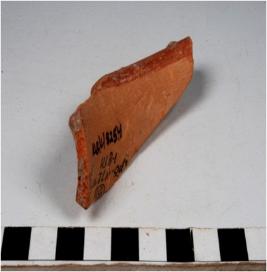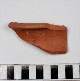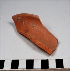 | Description / विवरण | A fragment of a vase of red ware with out turned rim, concave neck, treated with red slip of fine fabric. |