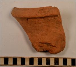 | Description / विवरण | A fragment of a jar of red ware with out turned rim, oblique sides of medium fabric. |