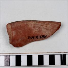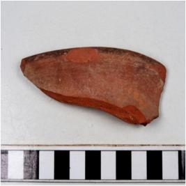 | Description / विवरण | A fragment of a vase of red ware with flared rim, concave neck, tapering sides of medium fabric well levigated. |