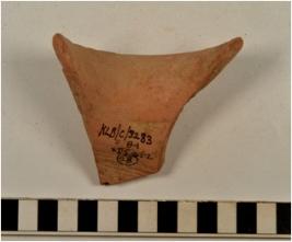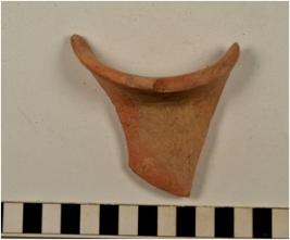 | Description / विवरण | A fragment of a vase of red ware with flared rim, concave neck and oblique sides of fine fabric well levigated. |