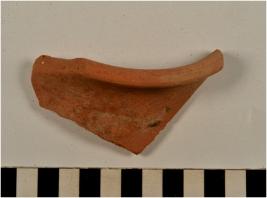 | Description / विवरण | A fragment of a vase of red ware with flaring rim concave neck of medium fabric. |