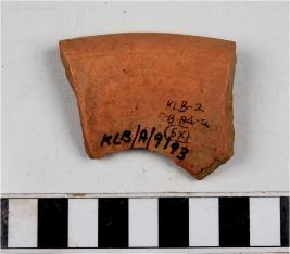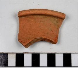 | Description / विवरण | A fragment of a vase of red ware with out turned rim, concave neck, oblique sides of fine fabric. |