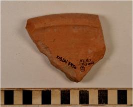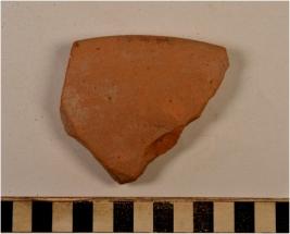 | Description / विवरण | A fragment of a dish of red ware with nail headed rim, flat base of fine fabric. |