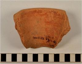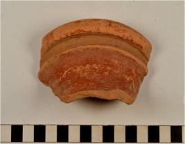 | Description / विवरण | A fragment of a vase of red ware with beaded rim, having ridge, concave neck, treated with red slip of fine fabric. |