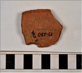 | Description / विवरण | A fragment of a pot of red ware with out turned rim having rope design, oblique sides, of medium fabric. |