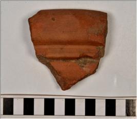 | Description / विवरण | A fragment of a jar of red ware incurved rim having ridges, oblique sides and coarse fabric. |