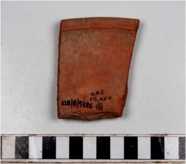 | Description / विवरण | A fragment of a bowl of red ware with nail headed rim, straight sides of fine fabric. |
